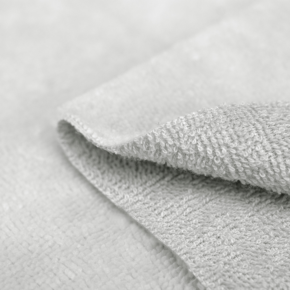 Tkanina Frotte wykonana z mieszanki włókien bawełnianych oraz bambusowych.
