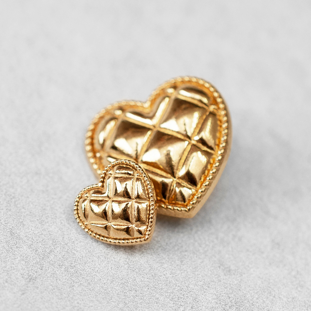 Pozłacany guzik metalowy na stopce w kształcie serca.