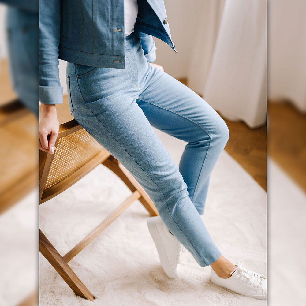 Jeans Davis, bardzo modna w tym sezonie tkanina wykonana z naturalnych włókien bawełny.