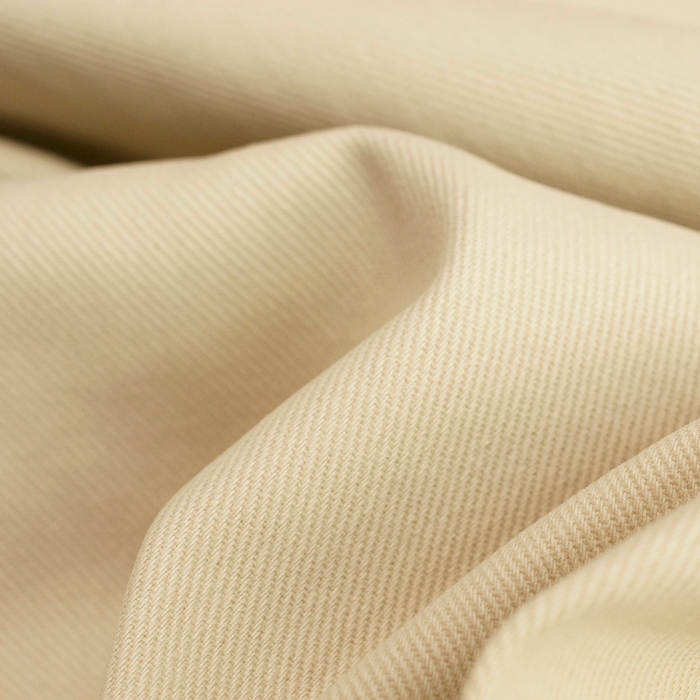 Jeansowa tkanina bawełniana wyróżnia się diagonalną fakturą i jednolitym kolorem.