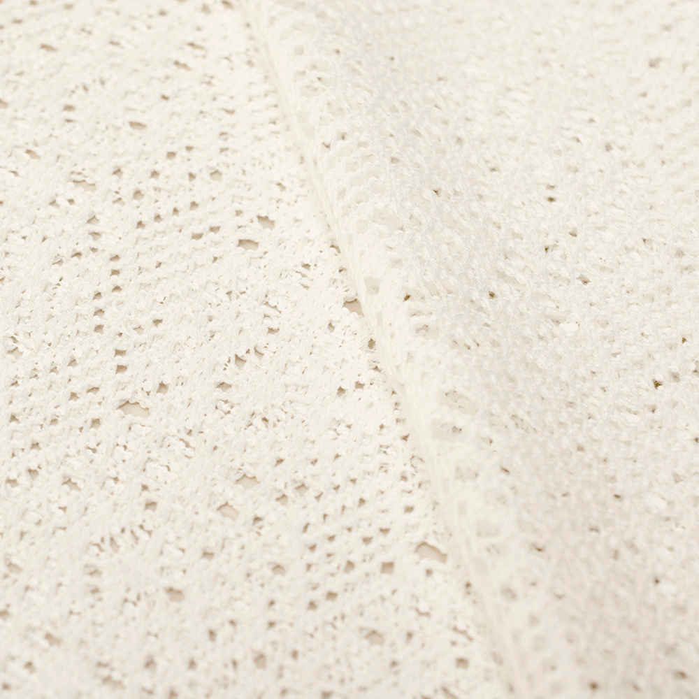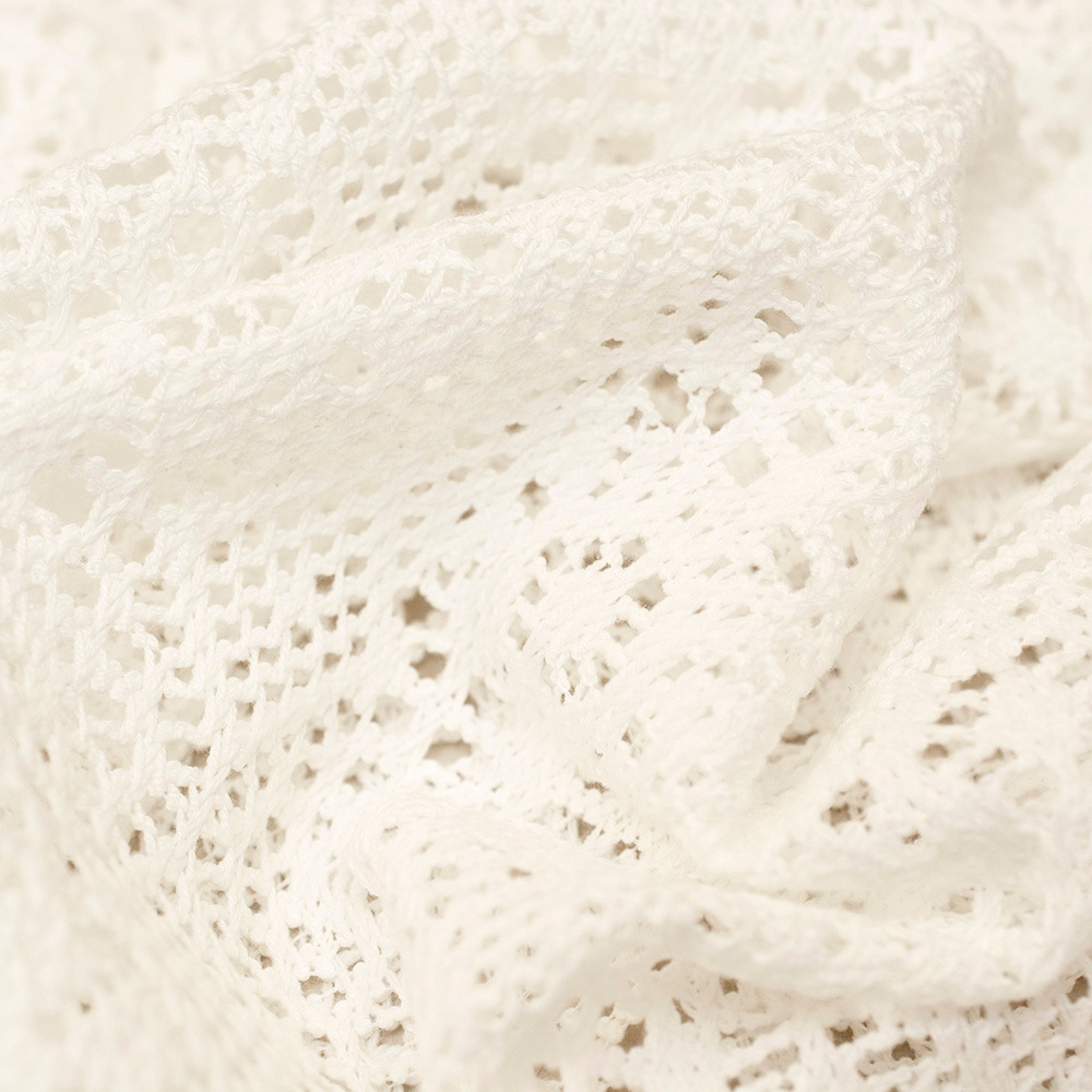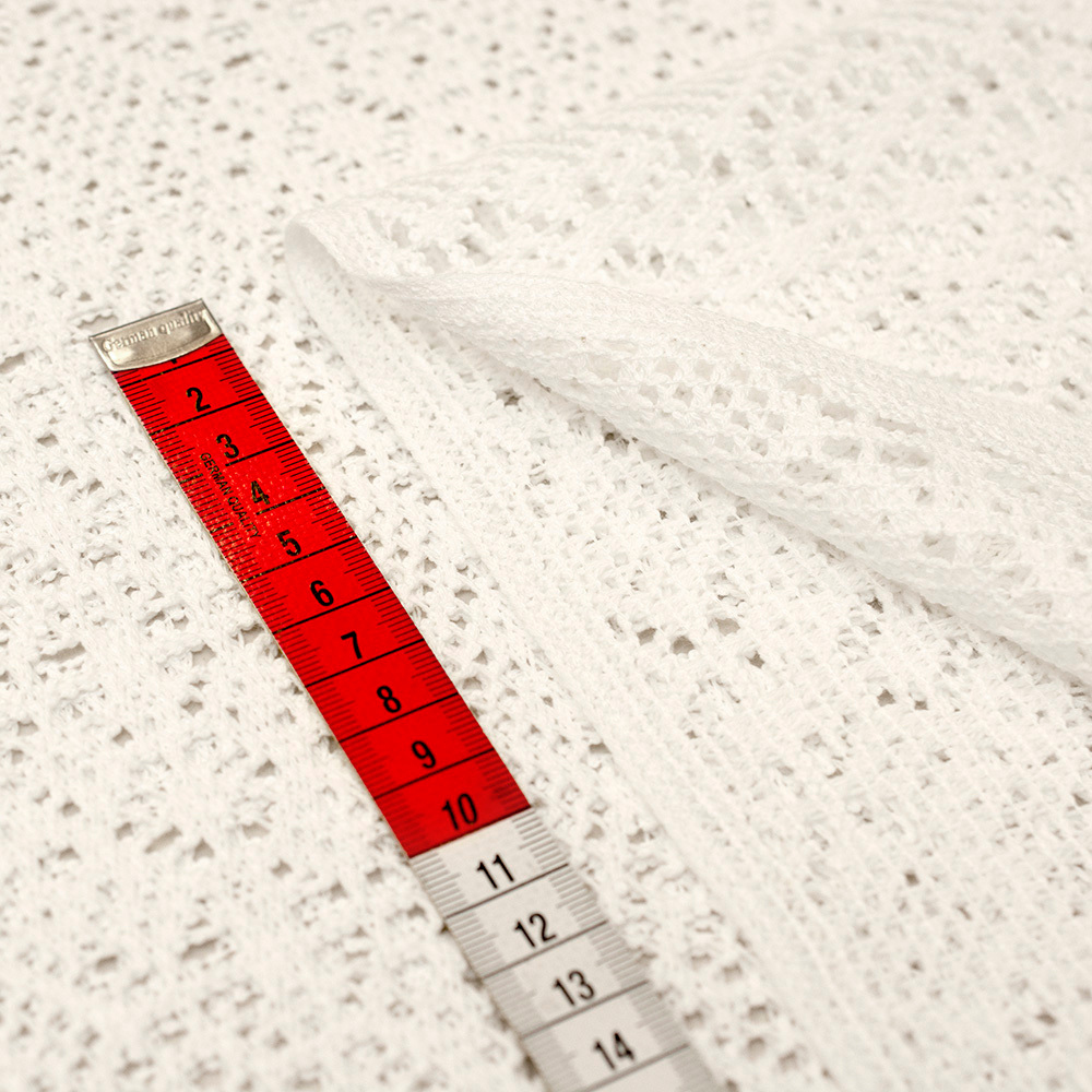 Ażurowa koronka z miękkiej, przyjemnej w dotyku bawełny o jednolitym kolorze. Pięknie prezentuje się na sylwetce, dodaje lekkości każdej stylizacji. Idealna na letnie projekty w estetyce Boho, Eko czy Natur. Doskonale sprawdzi się w sukienkach, spódnicach, bluzkach oraz narzutkach, a także jako efektowny detal, na przykład w formie torebki lub innych dodatków.