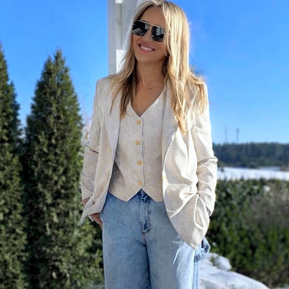 Kratka Chloe to wiskozowa tkanina stworzona z myślą o sukienkach, marynarkach, spódnicach i kamizelkach. Świetnie sprawdza się zarówno w codziennych projektach, jak i w bardziej eleganckich formach. Materiał jest lekki, miękki i wyjątkowo przyjemny w dotyku, dzięki czemu nosi się go naprawdę komfortowo. Ma subtelną, delikatnie wyczuwalną fakturę oraz lekko skośny splot, który dodaje mu charakteru i sprawia, że ładnie układa się na sylwetce. Tkanina nie gniecie się i nie wymaga podszewki, co czyni ją praktycznym wyborem do wielu fasonów.