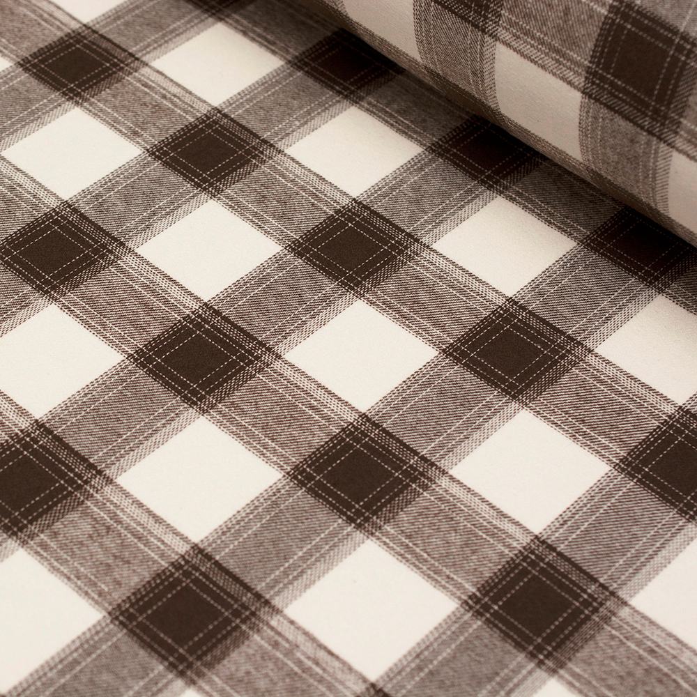 Miękka flanela wykonana z połączenia włókien bawełnianych i syntetycznych, w modnym wzorze kraty.