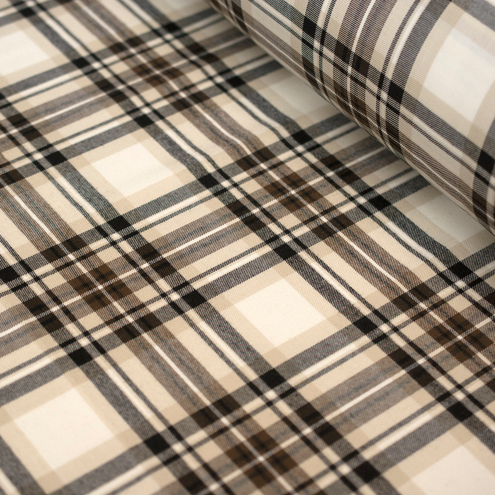 Miękka flanela wykonana z połączenia włókien bawełnianych i syntetycznych, w modnym wzorze kraty. Materiał jest przyjemny w dotyku, dobrze przepuszcza powietrze i cechuje się zwiększoną odpornością na uszkodzenia mechaniczne. Dwustronny wzór podnosi walory estetyczne i funkcjonalność tkaniny, umożliwiając wszechstronne zastosowanie. Doskonale sprawdza się w codziennej odzieży, szczególnie w koszulach, sukienkach o klasycznym kroju oraz modelach typu szmizjerka. Kraciasta spódnica uszyta z tej tkaniny to modny wybór, który idealnie wpisuje się w aktualne trendy.