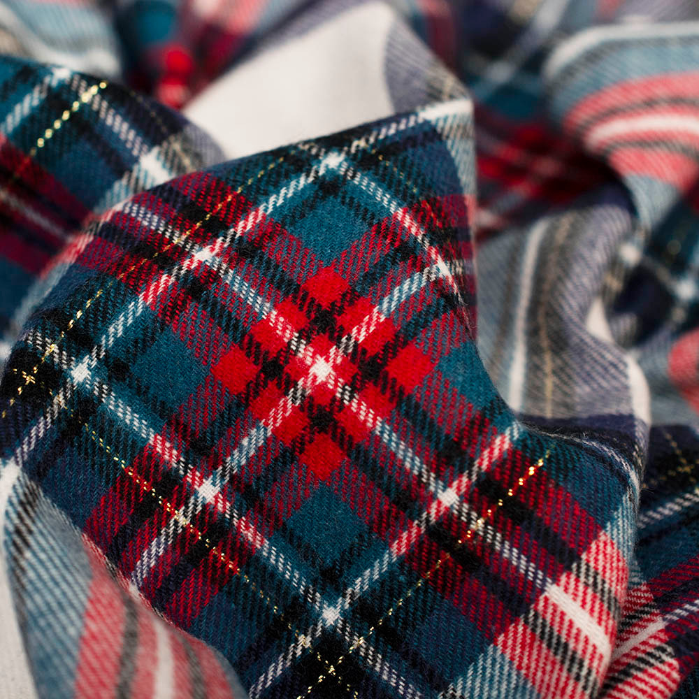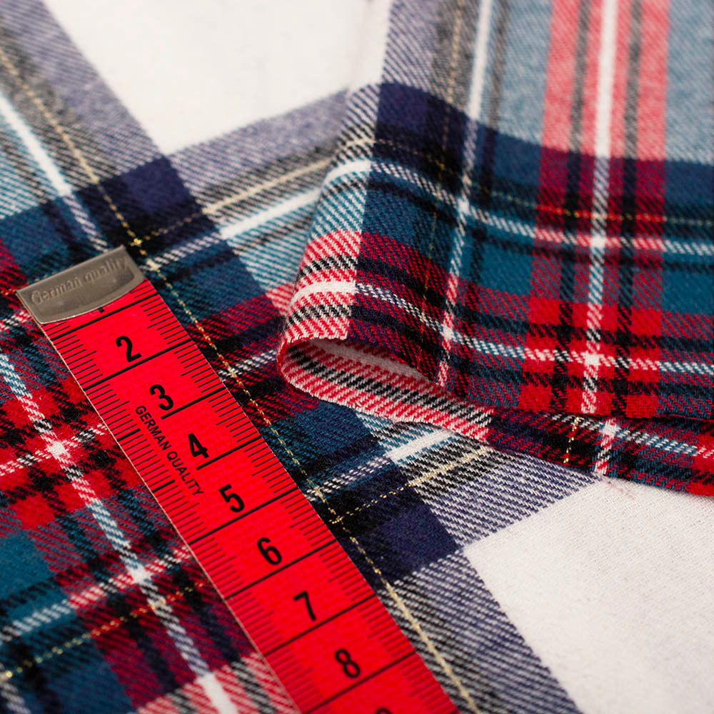 Miękka flanela wykonana z połączenia włókien bawełnianych i syntetycznych, w modnym wzorze kraty. Materiał jest przyjemny w dotyku, dobrze przepuszcza powietrze i cechuje się zwiększoną odpornością na uszkodzenia mechaniczne. Dwustronny wzór podnosi walory estetyczne i funkcjonalność tkaniny, umożliwiając wszechstronne zastosowanie. Doskonale sprawdza się w codziennej odzieży, szczególnie w koszulach, sukienkach o klasycznym kroju oraz modelach typu szmizjerka. Kraciasta spódnica uszyta z tej tkaniny to modny wybór, który idealnie wpisuje się w aktualne trendy.