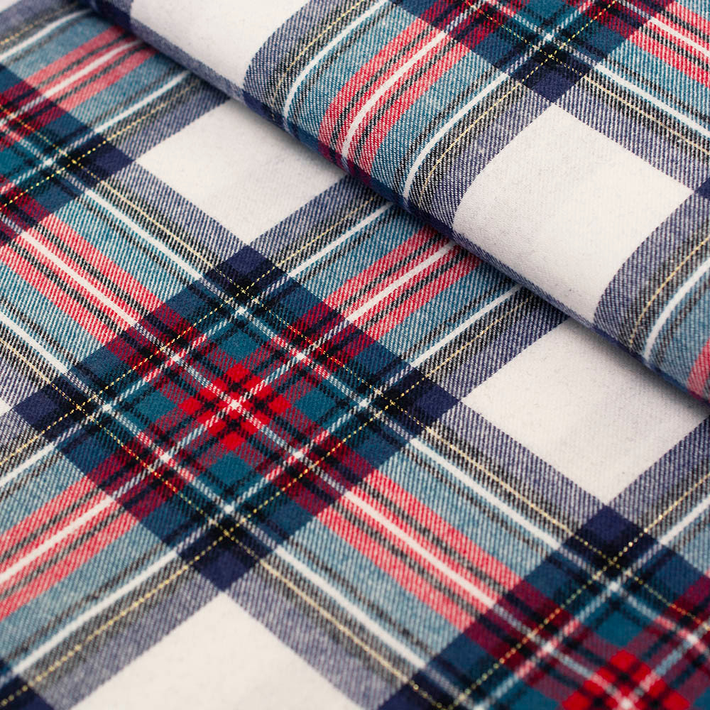 Miękka flanela wykonana z połączenia włókien bawełnianych i syntetycznych, w modnym wzorze kraty.