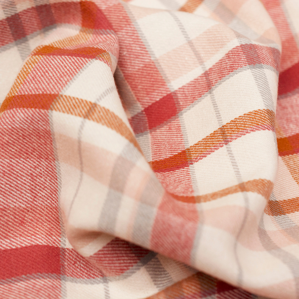 Miękka flanela wykonana z połączenia włókien bawełnianych i syntetycznych, w modnym wzorze kraty.