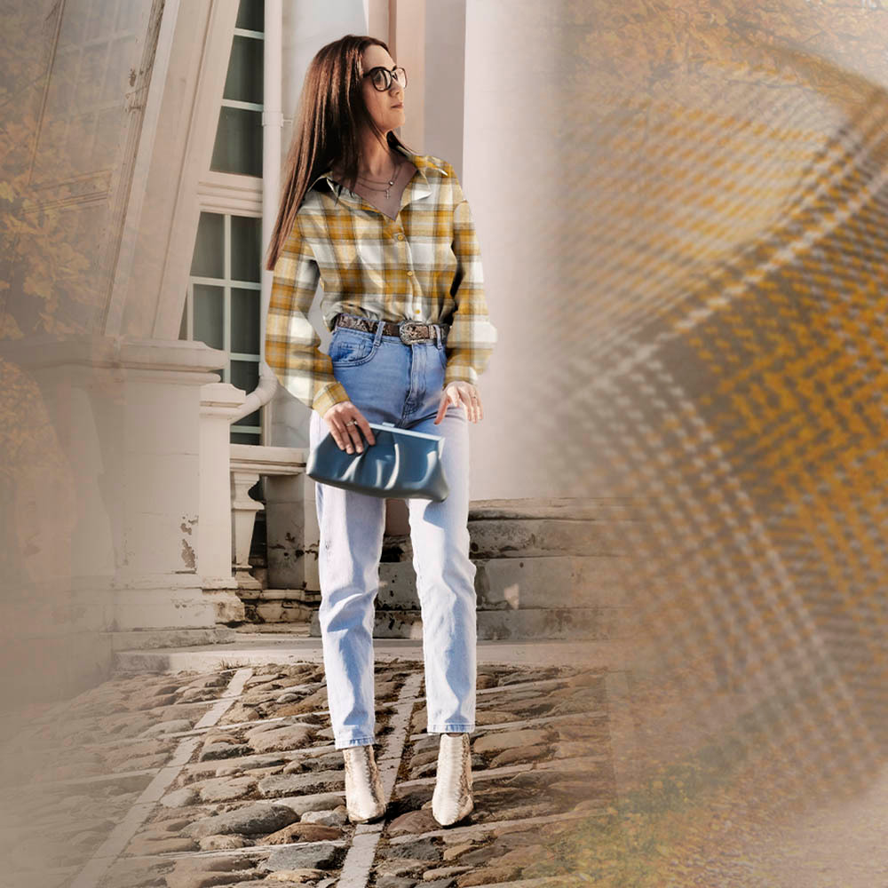 Miękka flanela wykonana z połączenia włókien bawełnianych i syntetycznych, w modnym wzorze kraty. Materiał jest przyjemny w dotyku, dobrze przepuszcza powietrze i cechuje się zwiększoną odpornością na uszkodzenia mechaniczne. Dwustronny wzór podnosi walory estetyczne i funkcjonalność tkaniny, umożliwiając wszechstronne zastosowanie. Doskonale sprawdza się w codziennej odzieży, szczególnie w koszulach, sukienkach o klasycznym kroju oraz modelach typu szmizjerka. Kraciasta spódnica uszyta z tej tkaniny to modny wybór, który idealnie wpisuje się w aktualne trendy.