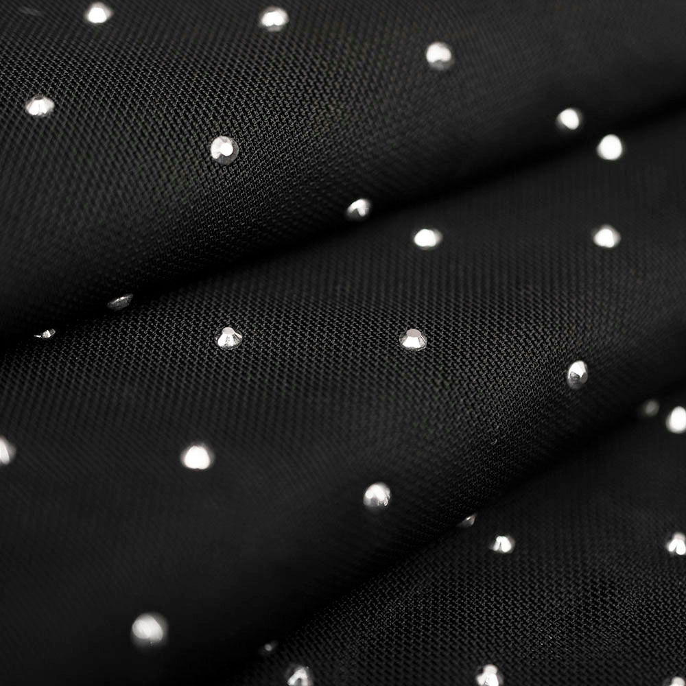 Siatka elastyczna Diamond odobiona drobnymi jetami. Układa się zwiewnie, posiada delikatnie śliską fakturę oraz niewielkieoczka. Świetnie sprawdza się zarówno jako element uzupełniający do uszytej odzieży, a także jako samodzielna kreacja, np. sukienka lub bluzka.