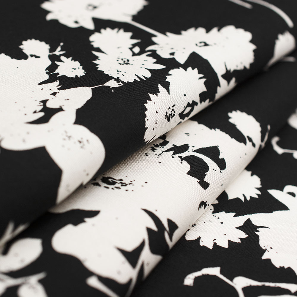Wzorzysta tkanina wiskozowa, idealna na sukienki, spódnice i bluzki. Wykonana z włókien naturalnego pochodzenia, charakteryzuje się świetną przepuszczalnością powietrza. Jest lekka, zwiewna, układa się miękko i lejąco. Ze względu na swoje właściwości tkaniny tego typu świetnie nadają się na luźniejsze lub rozkloszowane fasony, bardzo ładnie prezentują się przy falbanach lub marszczeniach.