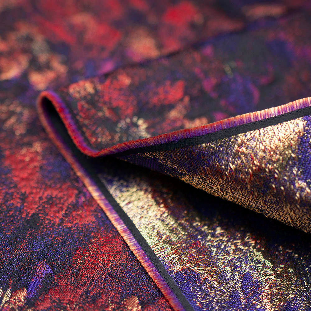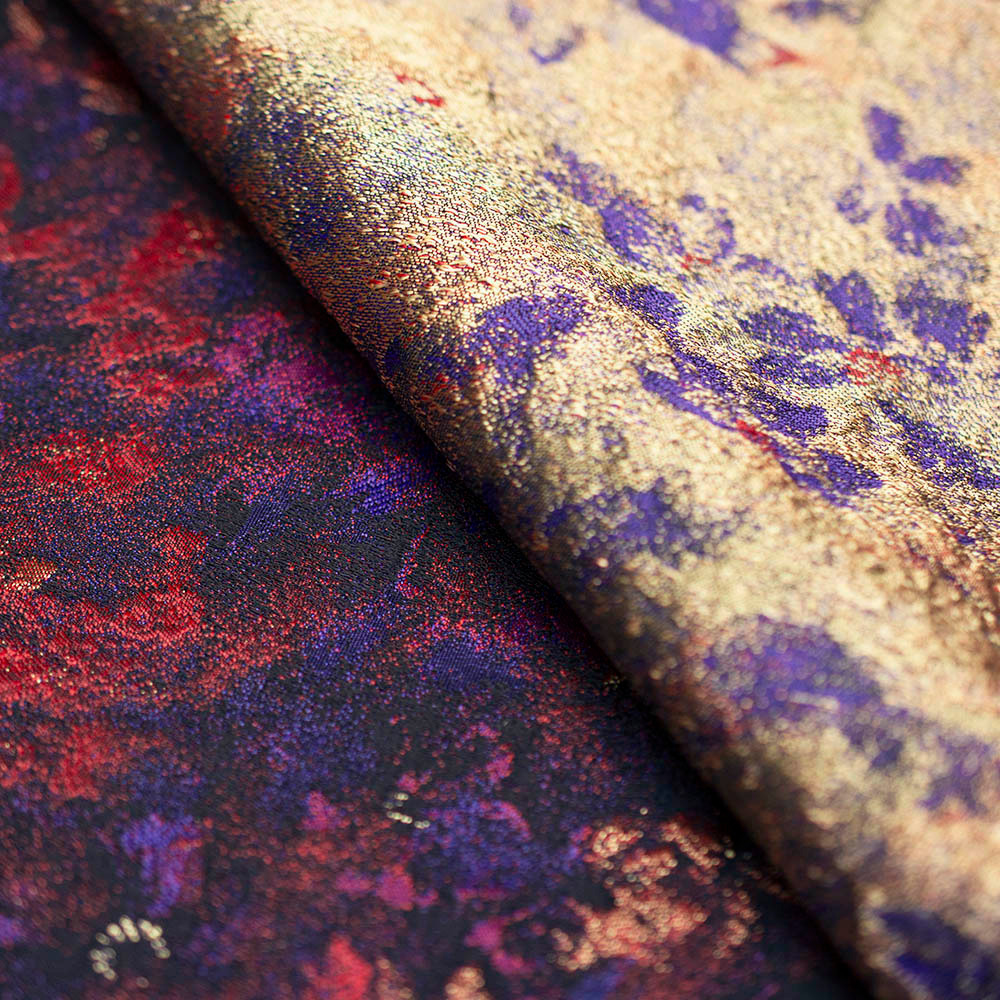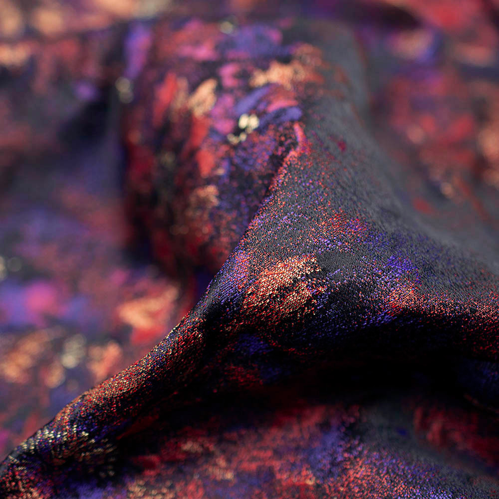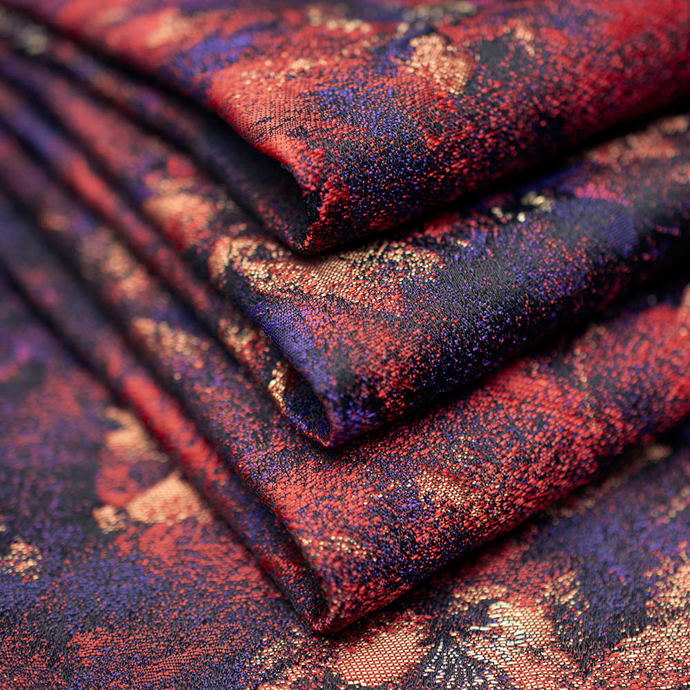 Tkanina żakardowa o wyczuwalnej fakturze zachwyca bogactwem i dekoracyjnością. Złota nitka subtelnie podkreśla kwiatowy wzór, dodając materiałowi elegancji i blasku. Dzięki zastosowaniu efektu memory, tkanina zachowuje swój kształt i strukturę nawet po długim użytkowaniu, co czyni ją wyjątkowo praktyczną i trwałą. To materiał, który prezentuje się niezwykle efektownie – idealny do szykownych marynarek i żakietów. Jego struktura nadaje projektom głębię i wyrazistość, a jednocześnie zapewnia komfort noszenia. Doskonale sprawdza się w kolekcjach premium, gdzie liczy się detal, luksusowy charakter i trwałość formy. Ten materiał wnosi do każdej stylizacji nutę klasy, artystycznego wyrazu i nowoczesnej funkcjonalności.
