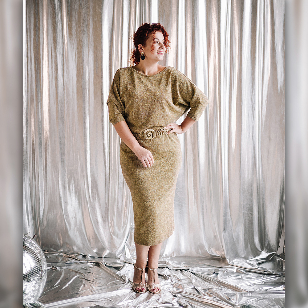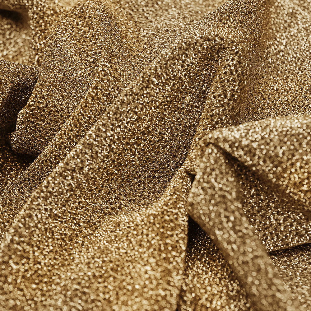 Elastyczna dzianina z dodatkiem nici metalicznej. Jest bardzo efektowna, i zjawiskowa, ładnie prezentuje się na sylwetce, szczególnie przy przylegających fasonach. Świetnie sprawdzi się na kreacje andrzejkowe, sylwestrowe, karnawałowe, balowe, a także na stroje taneczne. Dzianina jest bardzo dobra gatunkowo, lewa strona została zabezpieczona dodatkową warstwą materiału, przyjemną dla skóry. Dzięki temu uszyte kreacje nie wymagają użycia podszewki.