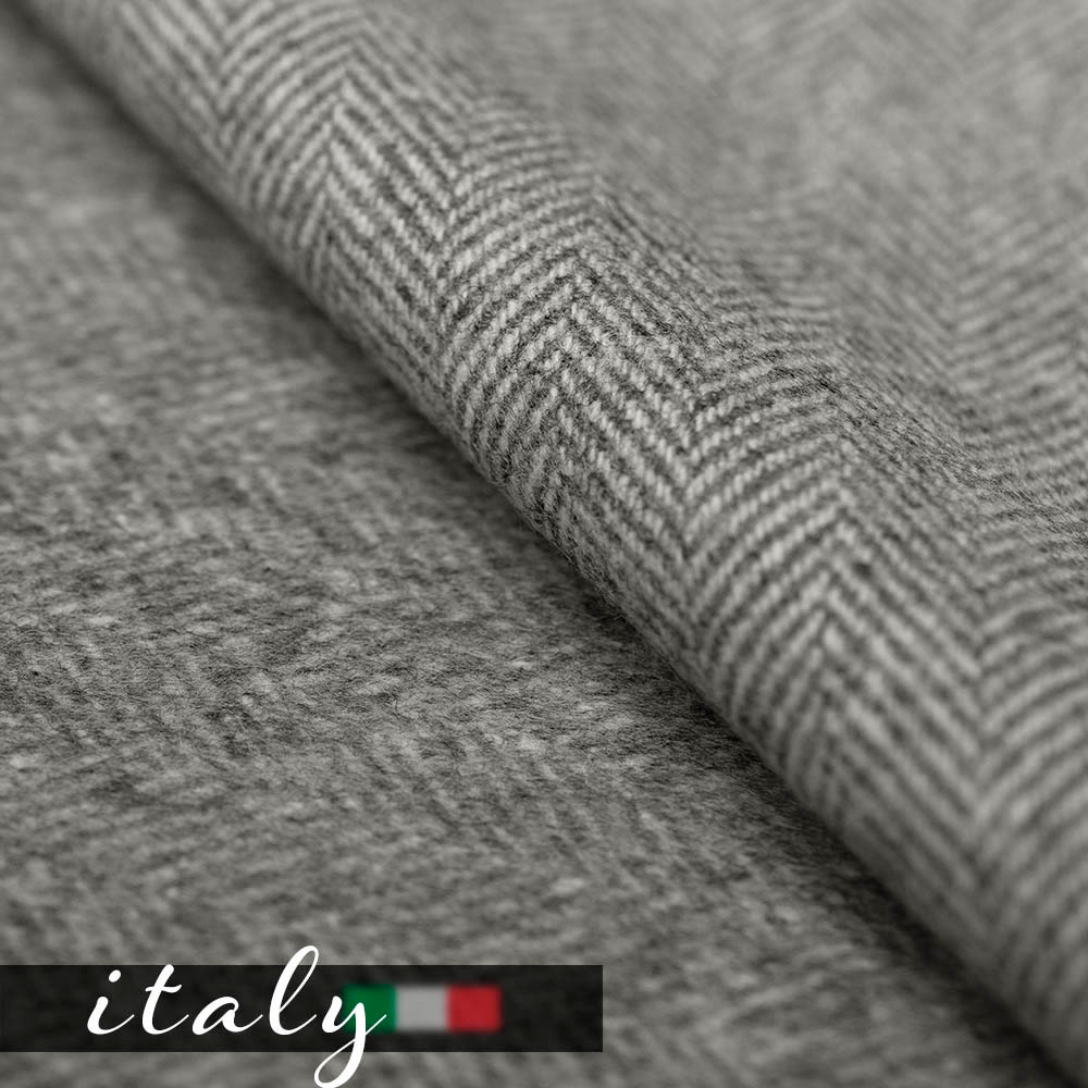 Tkanina Modena Jodełka to elegancka wełna o drobnym, modnym deseniu w klasyczną jodełkę, która dodaje projektom wyrafinowanego charakteru.