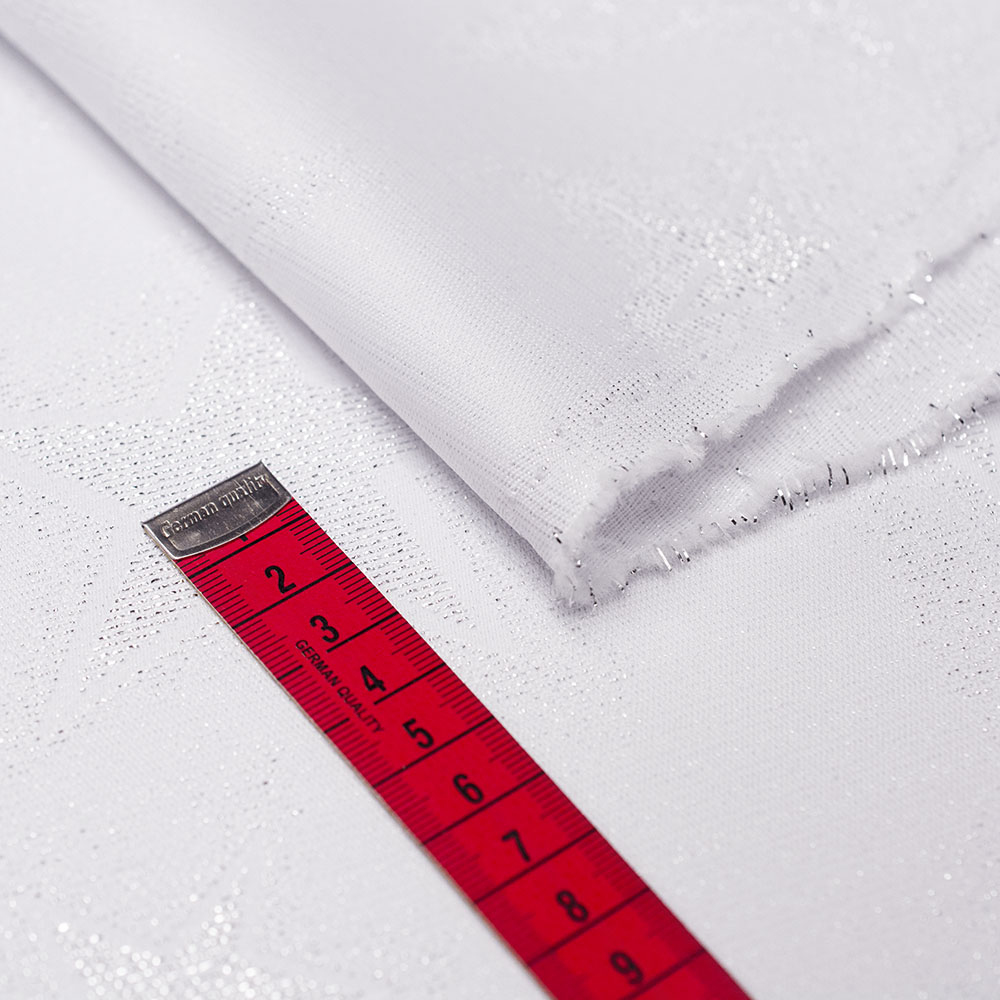 Tkanina obrusowa typie żakardowym w pięknym, świątecznym wzorze. Wykonana z włókien poliestrowych, z dodatkiem metalicznej nici, prezentuje się bardzo elegancko i wytwornie. Tkanina posiada właściwości plamoodporne, jest bardzo praktyczna w użytkowaniu. Z tkaniny głownie szyje się obrusy, bieżniki i serwetki. Dzięki świątecznemu motywowi świetnie sprawdzi się podczas kolacji wigilijnej.