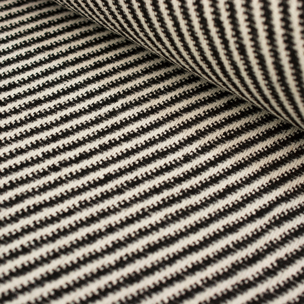 Tkanina wiskozowa płaszczowa. Wykonana z grubszej przędzy o zabarwieniu w odcieniach czerni i bieli. Posiada bardzo wyraźny splot, w którym dwukolorowe włókna tworzą na powierzchni tkaniny charakterystyczny deseń w postaci ukośnych pasków.