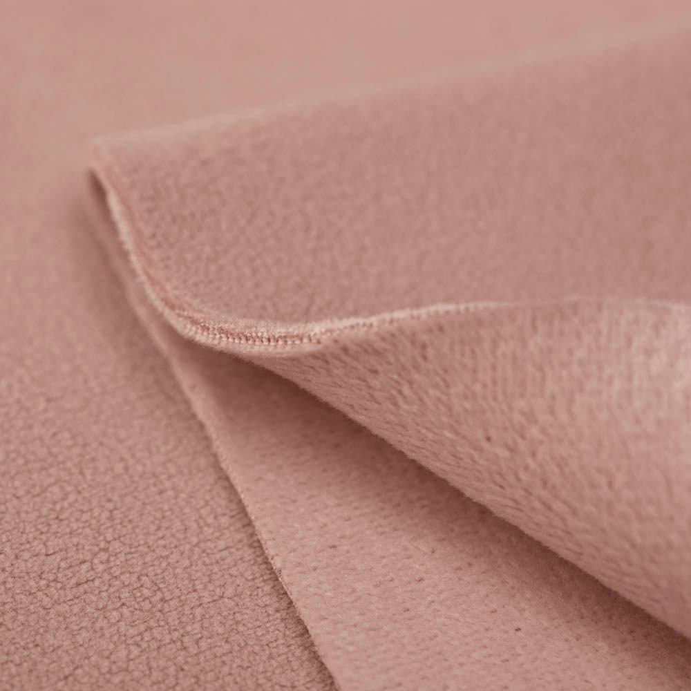 Dzianina Plusz Dwustronny to miękki, przyjemny w dotyku materiał o krótkim, gęstym włosiu po obu stronach.