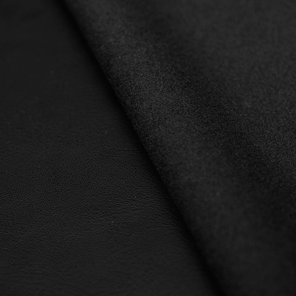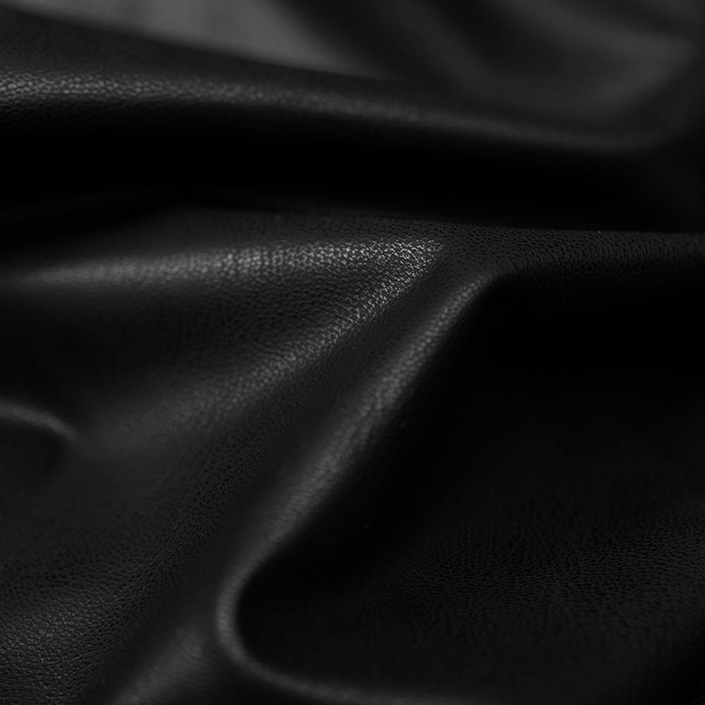 Skórzana tkanina o jednolitym kolorze doskonale nadaje się do projektów wymagających dopasowania i wygody. Jej elastyczność sprawia, że idealnie przylega do ciała, podkreślając sylwetkę w fasonach takich jak legginsy, spodnie czy spódnice. Od spodu wykończona jest miękkim meszkiem, który zapewnia komfort noszenia i przyjemne uczucie na skórze. Materiał łączy w sobie stylowy wygląd skóry z funkcjonalnością dzianiny, nie krępując ruchów. Świetnie sprawdza się w modzie codziennej, jak i bardziej wyrazistych stylizacjach.