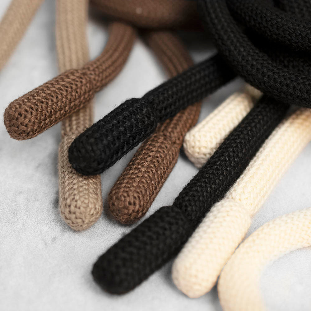 Ozdobny sznurek o średnicy 1 cm, wykonany w technice plecionki zarówno w części głównej, jak i w wykończeniu. Stylowy i modny dodatek do bluz oraz kurtek. Doskonale sprawdza się jako element wykończeniowy odzieży, szczególnie jako ozdoba kaptura.