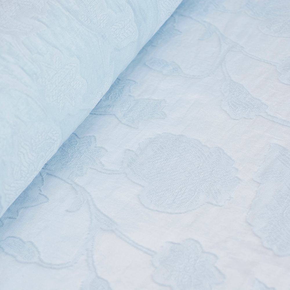 Tkanina z haftem kwiatowym wyróżnia się miękkością, lekkością i przyjemnym chwytem. Jej półtransparentna struktura dodaje projektom zwiewności, a jednokolorowy haft tworzy spójną, estetyczną powierzchnię. Materiał układa się naturalnie i zapewnia dobrą przewiewność, dzięki czemu świetnie sprawdza się w cieplejsze dni.
