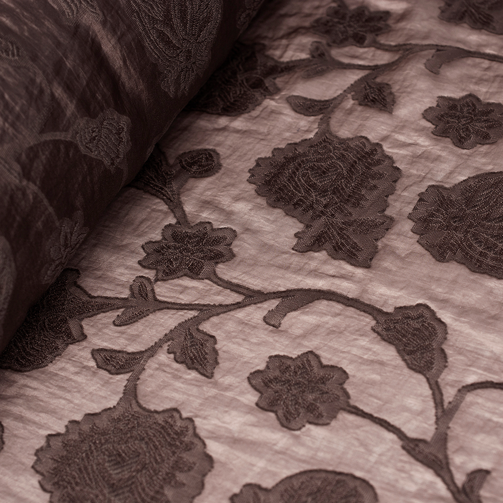 Tkanina z haftem kwiatowym wyróżnia się miękkością, lekkością i przyjemnym chwytem.