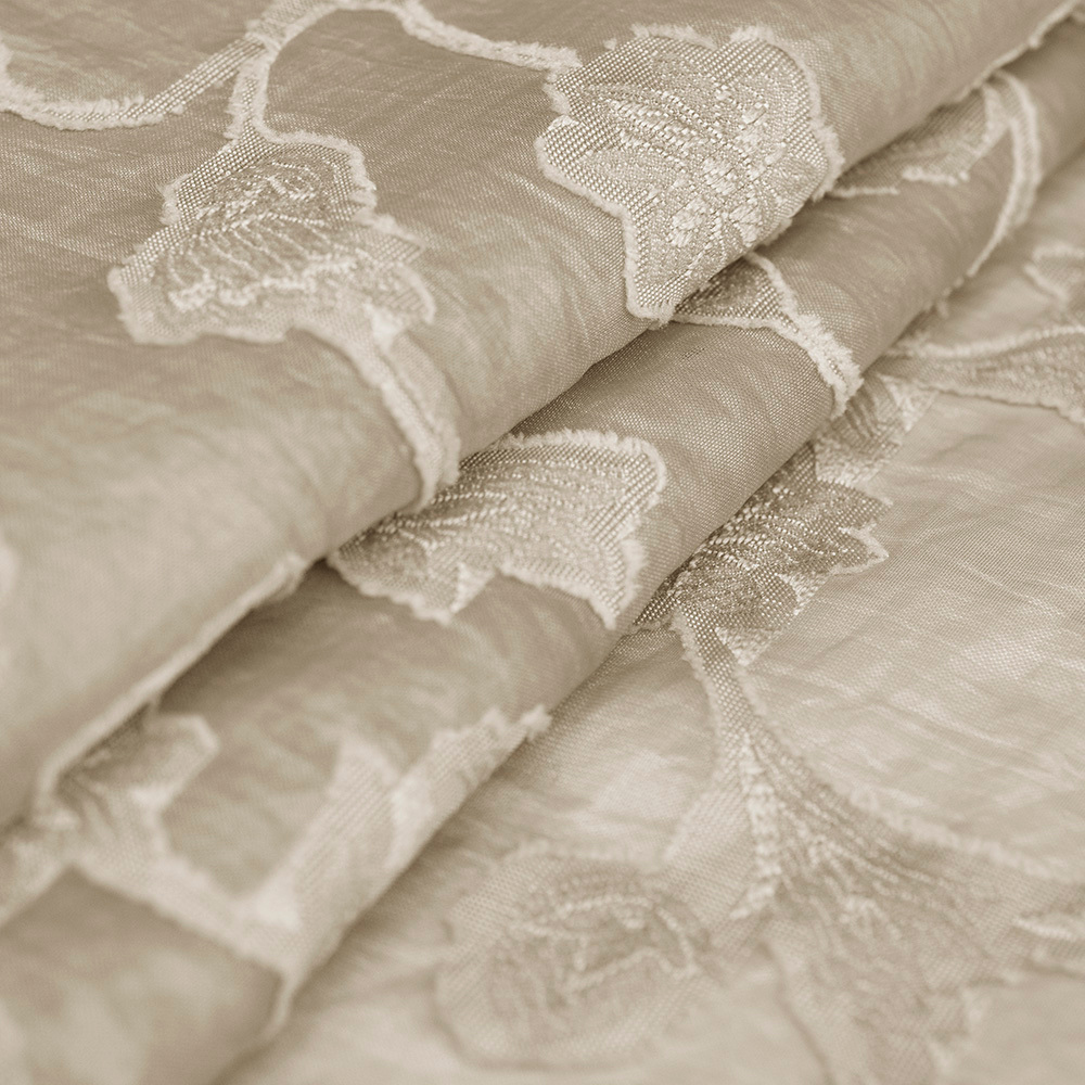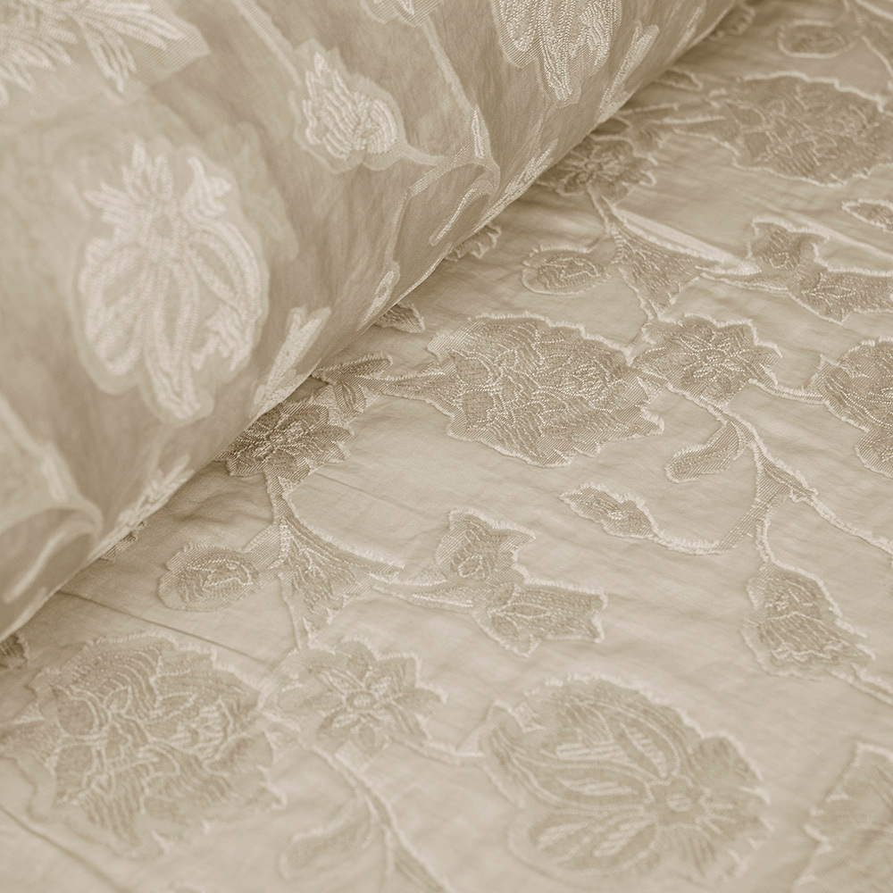 Tkanina z haftem kwiatowym wyróżnia się miękkością, lekkością i przyjemnym chwytem. Jej półtransparentna struktura dodaje projektom zwiewności, a jednokolorowy haft tworzy spójną, estetyczną powierzchnię. Materiał układa się naturalnie i zapewnia dobrą przewiewność, dzięki czemu świetnie sprawdza się w cieplejsze dni.