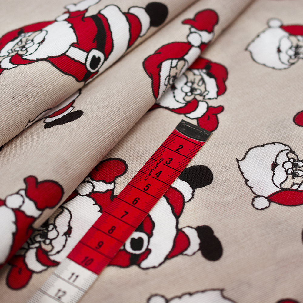 homeKOLEKCJA ŚWIĄTECZNA /  TKANINA DEKORACYJNA BAWEŁNIANA MIKOŁAJE NA BEŻOWYM