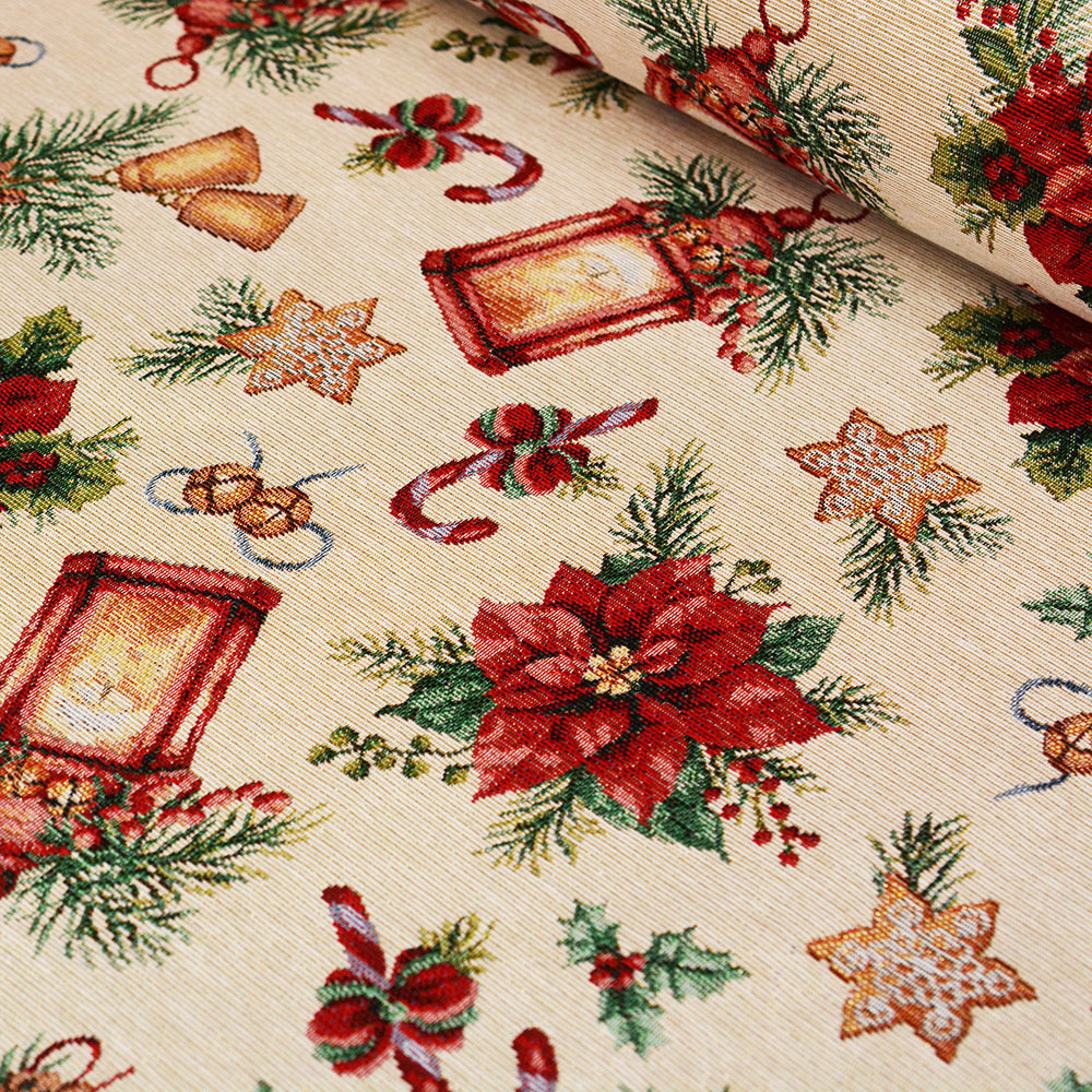 TKANINA DEKORACYJNA ŻAKARDOWA ŚWIĄTECZNE DEKORACJE