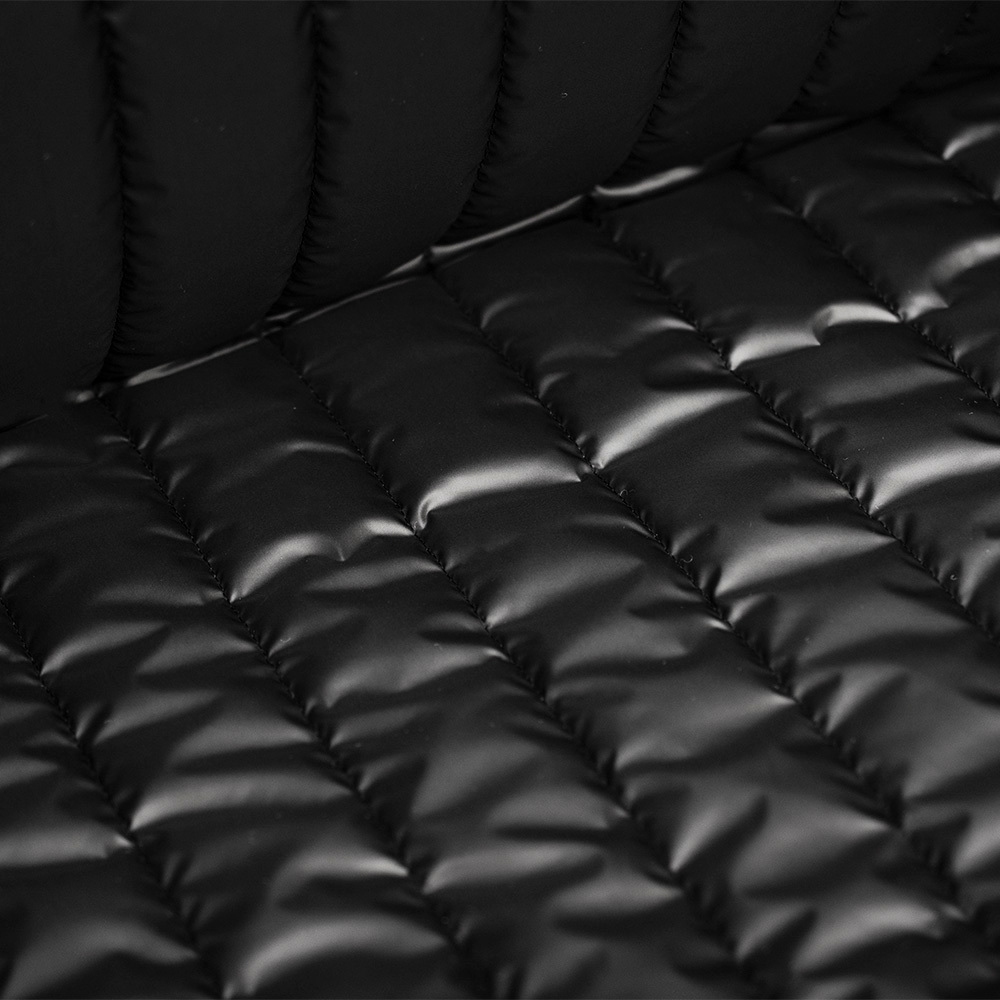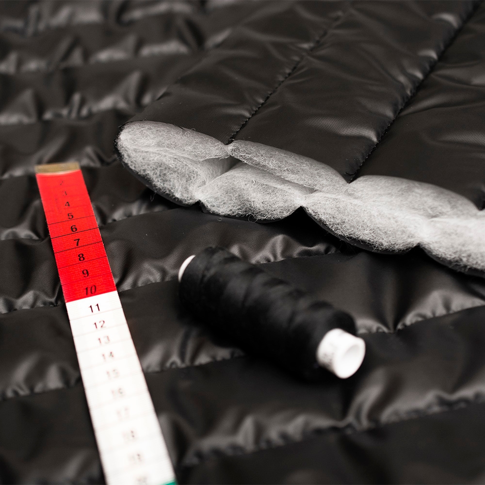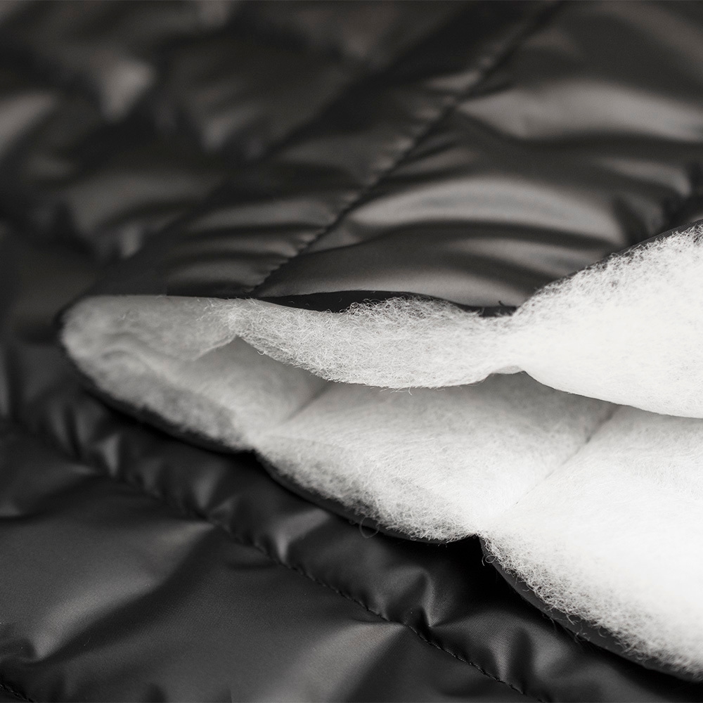 Warstwa zewnętrzna to cienki ortalionowy materiał o właściwościach wodoodpornych, drugą warstwę stanowi ocieplacz o grubości 100g/m2, i trzecia warstwa zabezpieczająca – flizelina. Tkanina jest lekka, a jednocześnie ciepła, zapewnia odpowiedni komfort w użytkowaniu. Jej dodatkowy atut stanowi tradycyjne pikowanie tzw. stebnówką, która tworzy na materiale pasy o szerokości 5 cm.