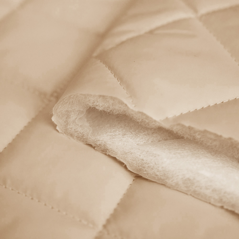 Warstwa zewnętrzna to cienki ortalionowy materiał o właściwościach wodoodpornych, drugą warstwę stanowi ocieplacz o grubości 100g/m2, i trzecia warstwa zabezpieczająca – flizelina. Tkanina jest lekka, a jednocześnie ciepła, zapewnia odpowiedni komfort w użytkowaniu. Jej dodatkowy atut stanowi tradycyjne pikowanie tzw. stebnówką, która tworzy na materiale wzór rombów o długości bokkó 5 cm.
