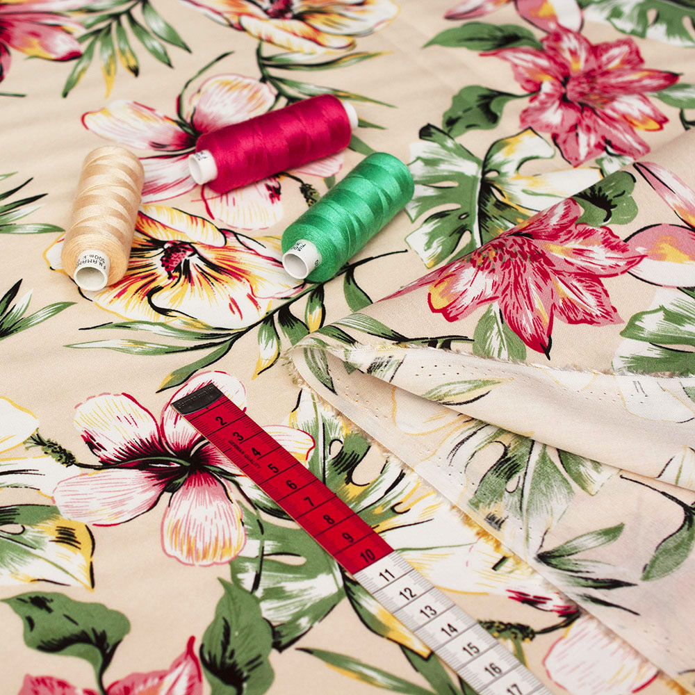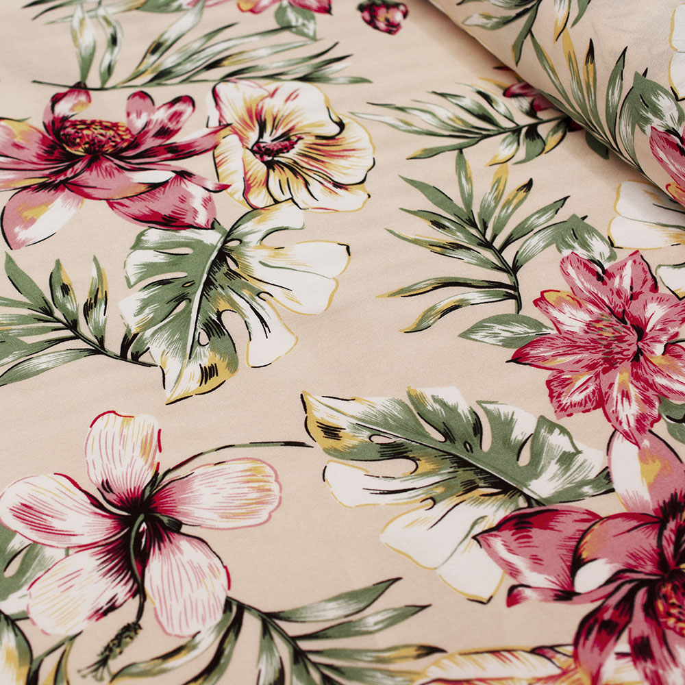 TKANINA WISKOZA KWIATY PIASKOWY BEŻ
