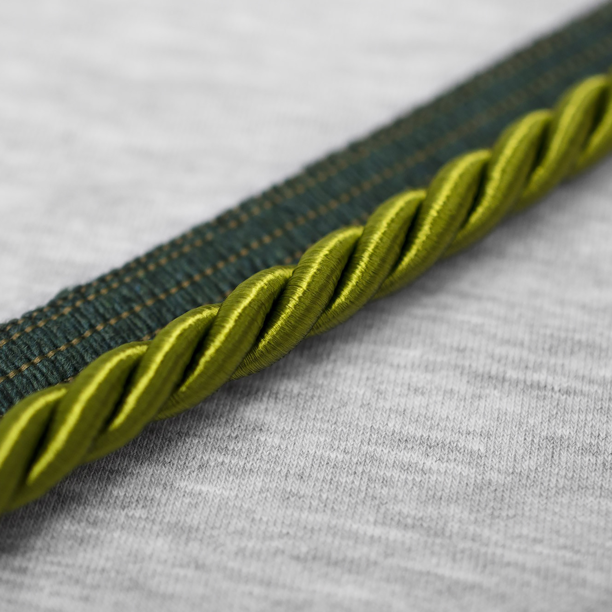 Dekoracyjna wypustka w formie skręconego sznurka, wykonana z połyskujących włókien satynowych. Idealna do stylowego wykończenia poduszek, narzut oraz tapicerki meblowej. Dodaje subtelnej elegancji i podkreśla detale aranżacji wnętrz.