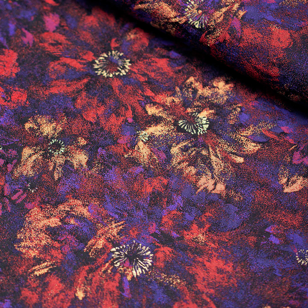 Tkanina żakardowa o wyczuwalnej fakturze zachwyca bogactwem i dekoracyjnością. Złota nitka subtelnie podkreśla kwiatowy wzór, dodając materiałowi elegancji i blasku. To tkanina, która prezentuje się niezwykle efektownie – idealna do szykownych marynarek i żakietów. Jej struktura nadaje projektom głębię i wyrazistość, a jednocześnie zapewnia trwałość i komfort noszenia. Doskonale sprawdza się w kolekcjach premium, gdzie liczy się detal i luksusowy charakter. Ten materiał wnosi do każdej stylizacji nutę klasy i artystycznego wyrazu.