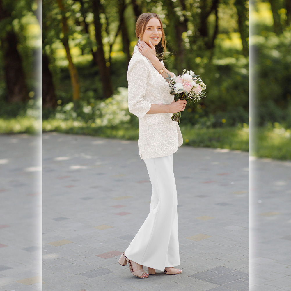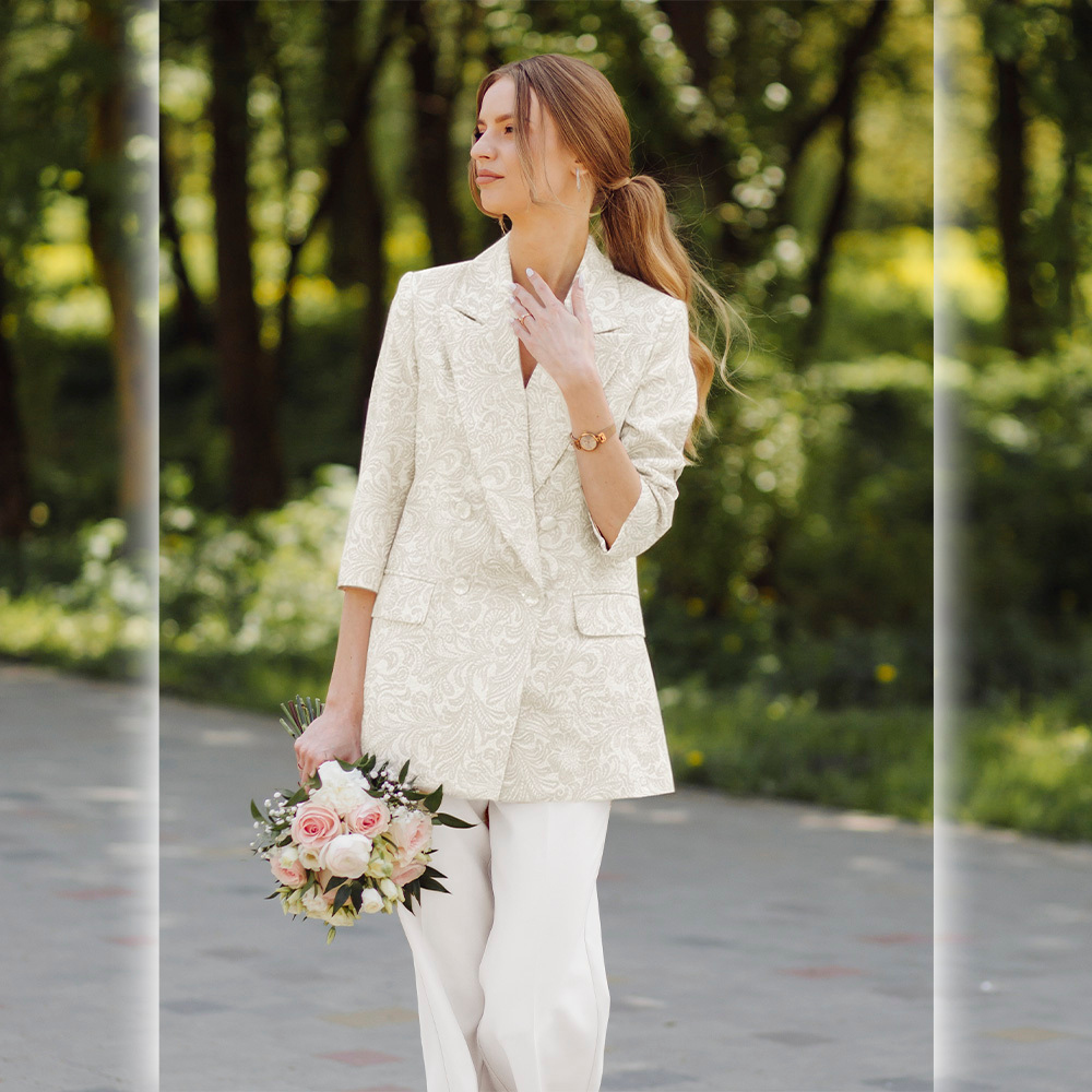 Tkanina żakardowa o jednolitym kolorze to elegancki materiał wyróżniający się charakterystycznym, strukturalnym wzorem powstającym bezpośrednio w procesie tkania. Jego powierzchnia ma harmonijną, lekko reliefową fakturę, która dodaje tkaninie głębi i szlachetności. Materiał układa się stabilnie, z naturalną plastycznością typową dla żakardu, dzięki czemu dobrze podkreśla formę odzieży. Wysoka zawartość włókien naturalnych zapewnia komfort noszenia oraz odpowiednią cyrkulację powietrza. Tkanina świetnie sprawdzi się na sukienki, spódnice, eleganckie spodnie, marynarki i żakiety.